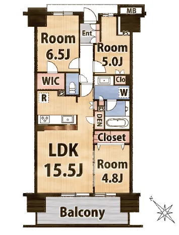6階部分角住戸!広々ルーフバルコニーと2面バルコニー付で開放感抜群の4LDK◎駅徒歩10分で生活に便利な立地も魅力です♪