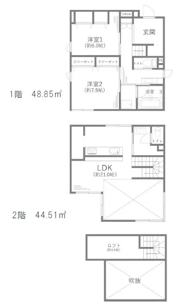 室内設備ロフト / パントリー / リビング階段 / 吹抜け