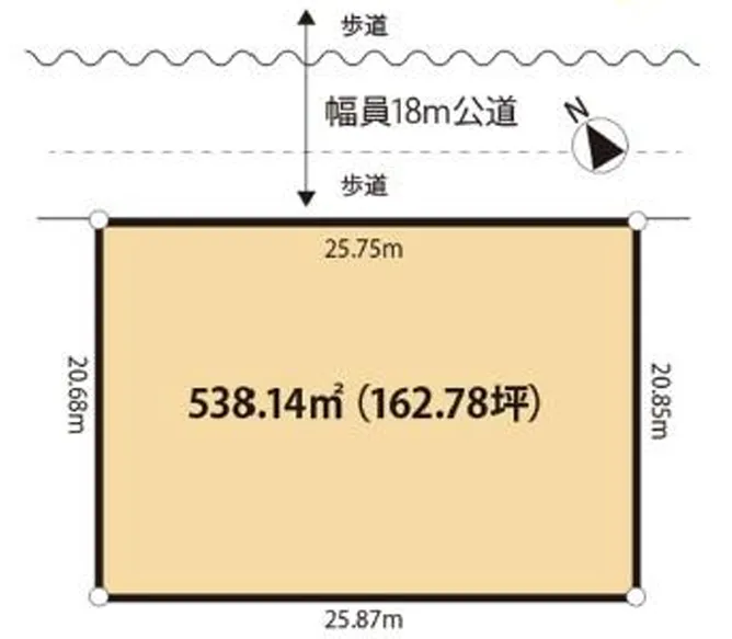 接道状況北東18m公道に25.75m面す
