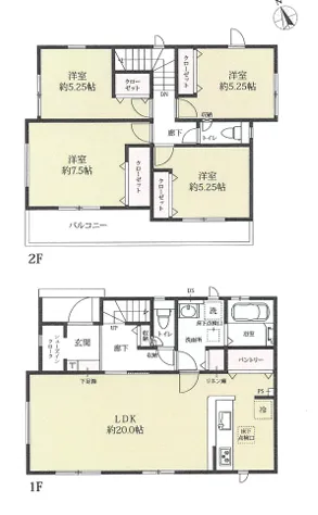 敷地面積50坪超のゆとりの5LDK!カースペース2台駐車可能(車種による)全居室収納に加え、パントリー&廊下収納付きですっきり整う住まい♪【4号棟】