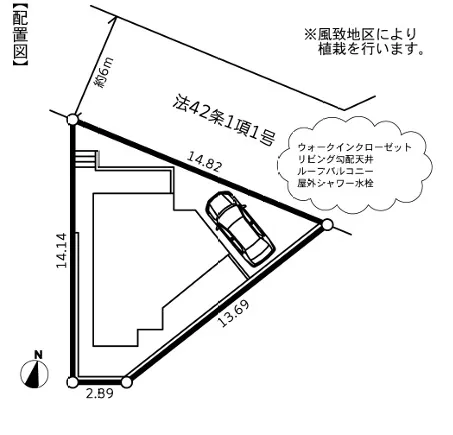 接道状況北6.0m公道に14.82m面す