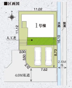接道状況南4m私道に7.5m面す