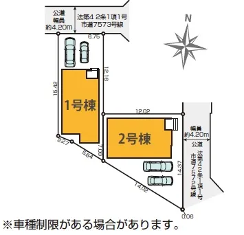 接道状況北4.2m公道に6.75m面す