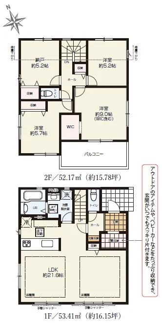 室内設備床暖房 / ウォークインクローゼット / リビング階段 / 納戸