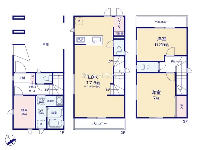 「藤沢本町」駅徒歩5分の好立地!ガレージを備えた3階建て♪1階には納戸、キッチン横には食品庫として使えるパントリーがあって便利です☆<A号棟>
