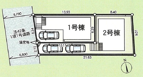 接道状況西6.8m公道に2.72m面す