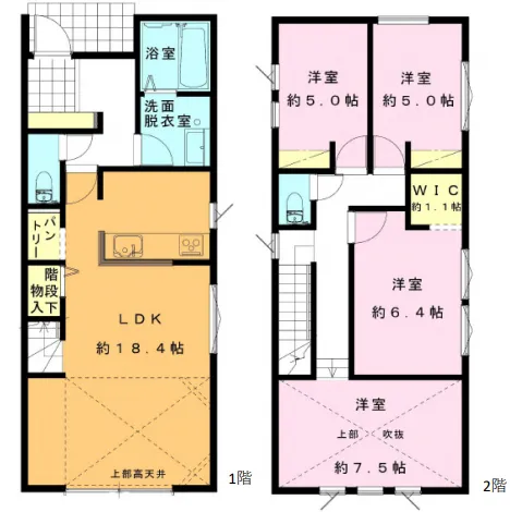 室内設備パントリー / リビング階段 / 吹抜け